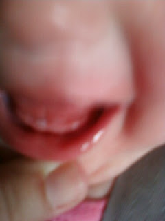 We noticed on Friday, July 2nd that Natalie popped her first tooth. I don't know if you can see it in the picture but I will try and get it again and post it.